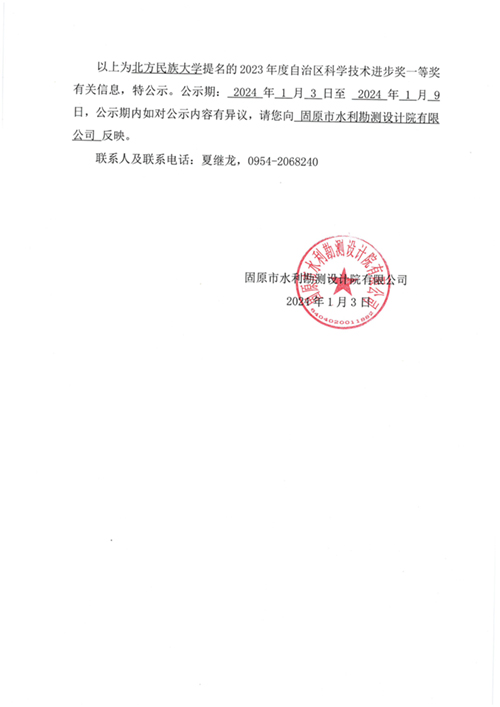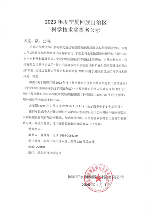 2023年度寧夏回族自治區(qū)科學(xué)技術(shù)獎提名公示